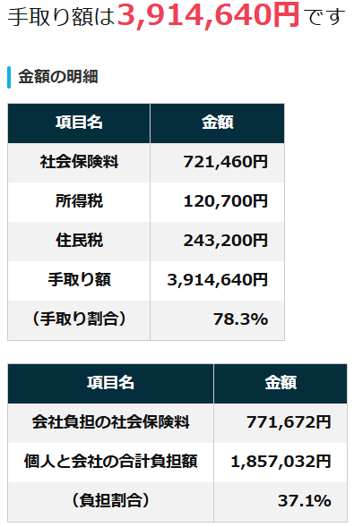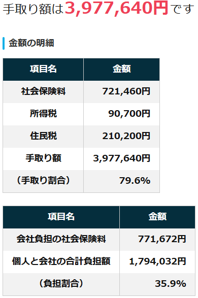 結果が表示されます。ここでは、「所得税」だけを利用します。これが、配偶者控除なしの場合の所得税です。